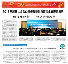 2016年3月15日,河南日报专刊刊登了 “2015年履行社会公益责任驻豫优秀直销企业形象展示”。隆力奇凭借2015年对公...